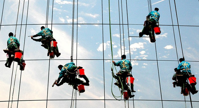 為了能夠確保員工的人身安全,煙臺德力保潔公司要求凡是參加高空外墻清洗的員工必須是年滿十八周歲的男性,并且受過專業(yè)的安全技術(shù)訓(xùn)練,擁有正式的專業(yè)證書才能工作。工人在工作之前不能飲酒,如果身體有任何的不適得不能去參加工作。